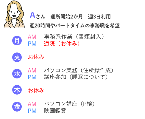 就労のベースとなる睡眠・メンタル・体調を専門職による支援で整えていきます。