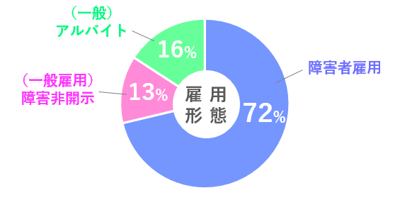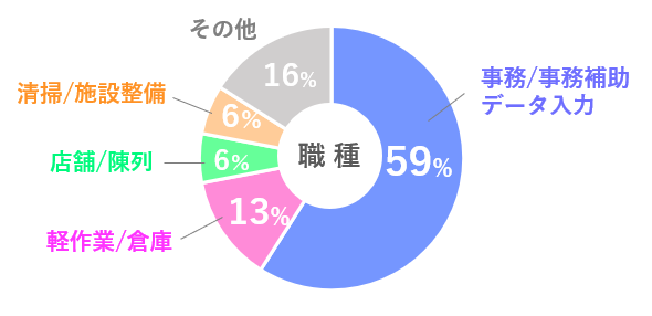 A 事務職の割合が多いですが、軽作業や店舗、清掃など様々です。