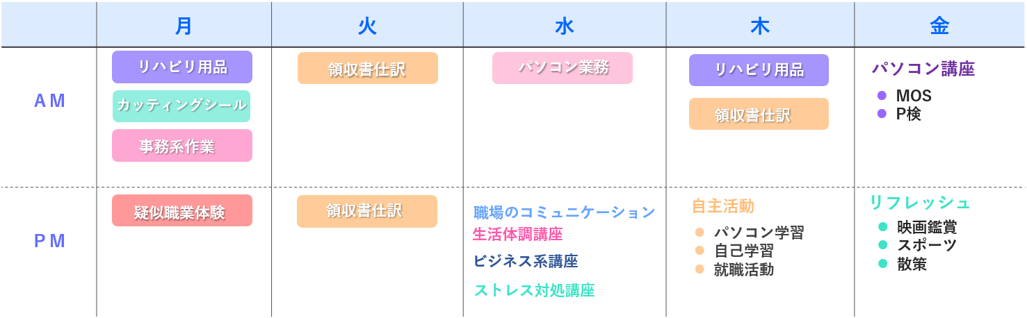 | 水 | AMパソコン業務 PM体調講座/就労講座/SST |
