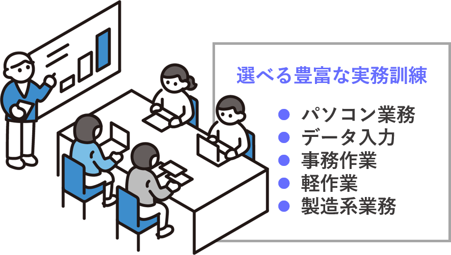 就労に合わせて選べる豊富な実務訓練で、しっかり実践力を身に付けられます。